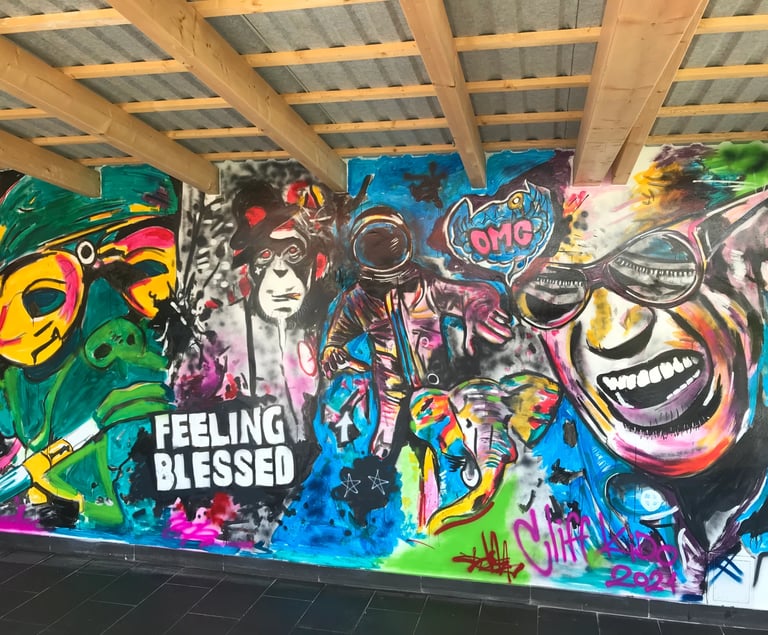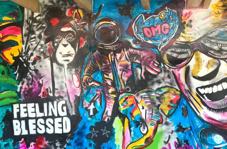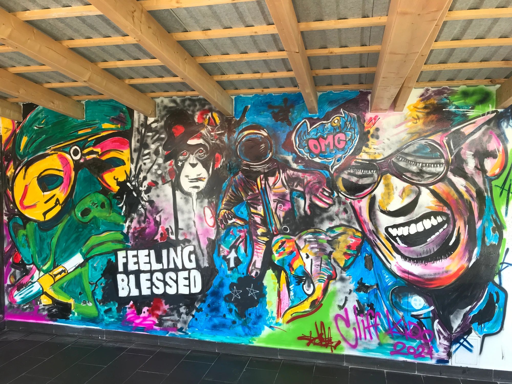 Această pictură a fost creată special pentru California Burger Cluj, cu scopul de a îmbunătăți aspectul clădirii temporar acoperită cu un mesh. Rezultatul final este unul impresionant și impunător, amplasat cu brio în contextul urban al orașului. Pictura se remarcă prin culorile vii și detalii bine conturate, adăugând o notă de originalitate și stil clădirii respective. Este un exemplu reușit de artă urbană care adaugă valoare și personalitate unui spațiu public, transformând un perete gri și anonim într-un obiect de atracție și interes pentru trecători și vizitatori.